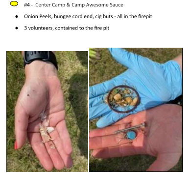 How did your camp do? This year the hardworking Leave No Trace team found some screws, some food leavings, and some zipties. Check your area!